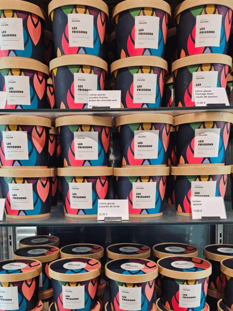 Si les bonbons de chocolat et les pralinés restent les signatures de la maison, l’offre ne cesse de se diversifier. Ces dernières années, les glaces et sorbets maison ont conquis les gourmands. Des grands classiques – pistache, vanille, chocolat – aux parfums plus fruités comme pêche blanche et verveine ou mangue-passion, sans oublier des créations originales telles que la crème glacée au fromage blanc nappée de coulis de passion… Chaque saveur est élaborée avec la même exigence et le même soin que leurs tablettes.